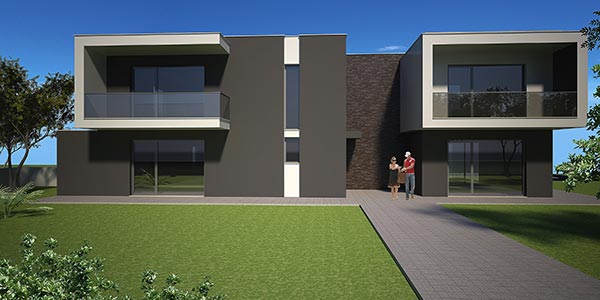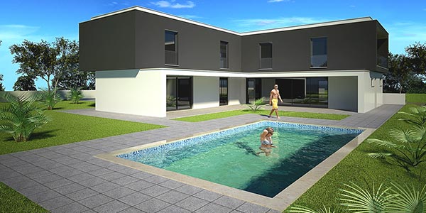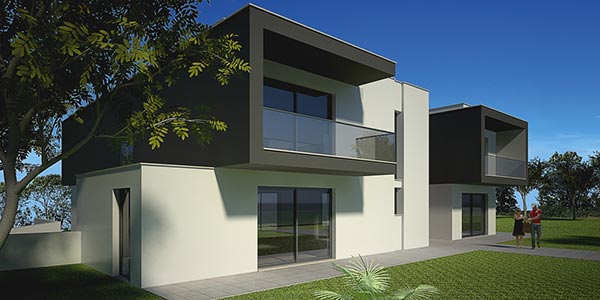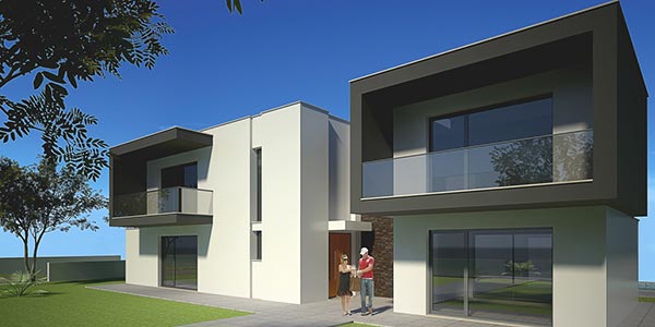 Imagens 3D exteriores de uma moradia na Serra do Bouro.
